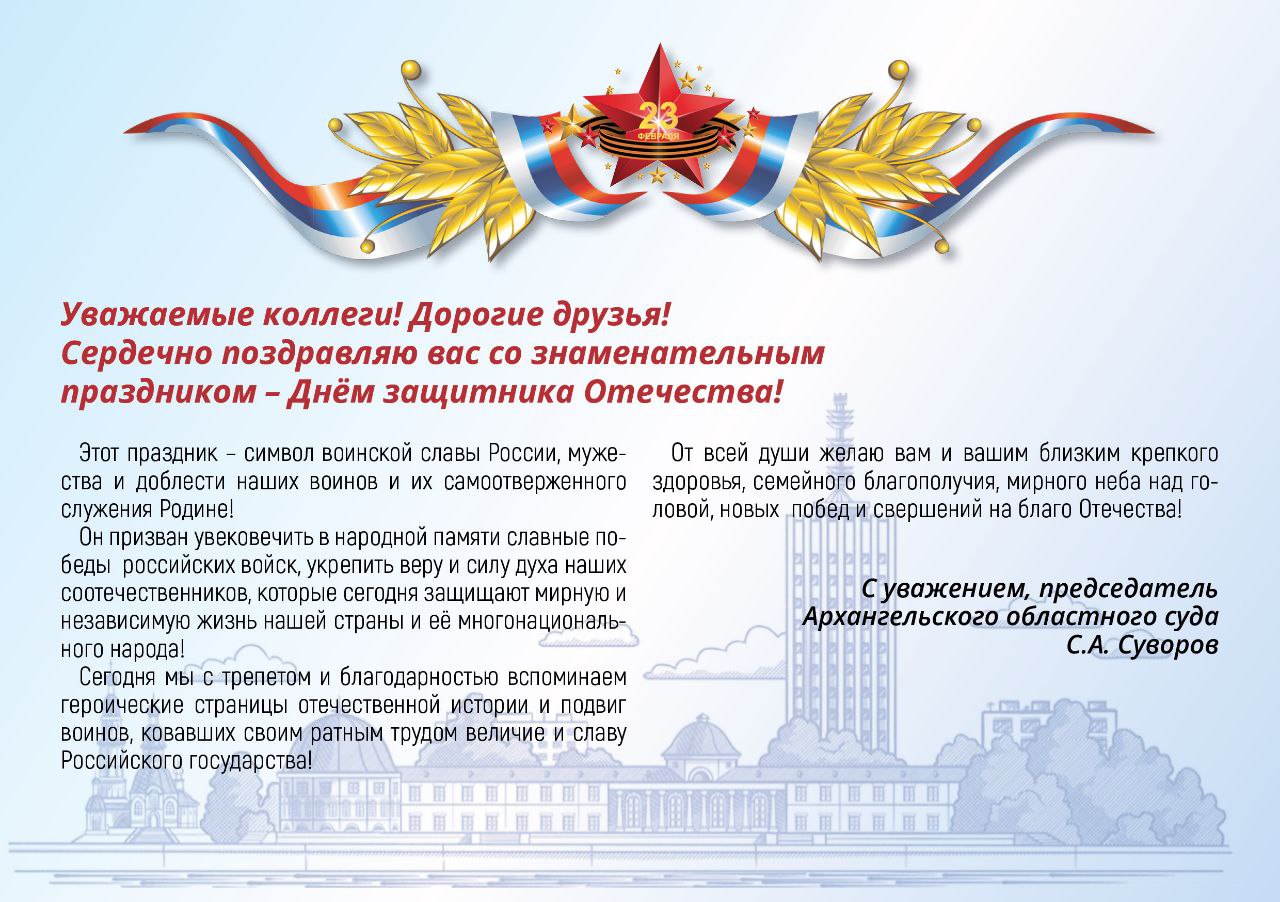 Поздравление председателя Архангельского областного суда с Днем защитника Отечества![]() |